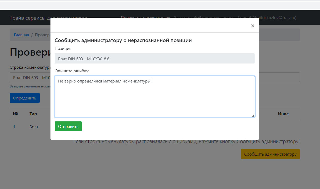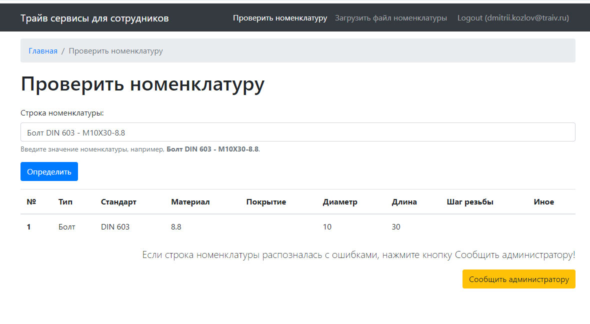 Если в списке распознанных параметрах видны явные несоответствия строке номенклатуры, то необходимо сообщить об этом администратору для того чтобы откорректировать алгоритм распознавания.