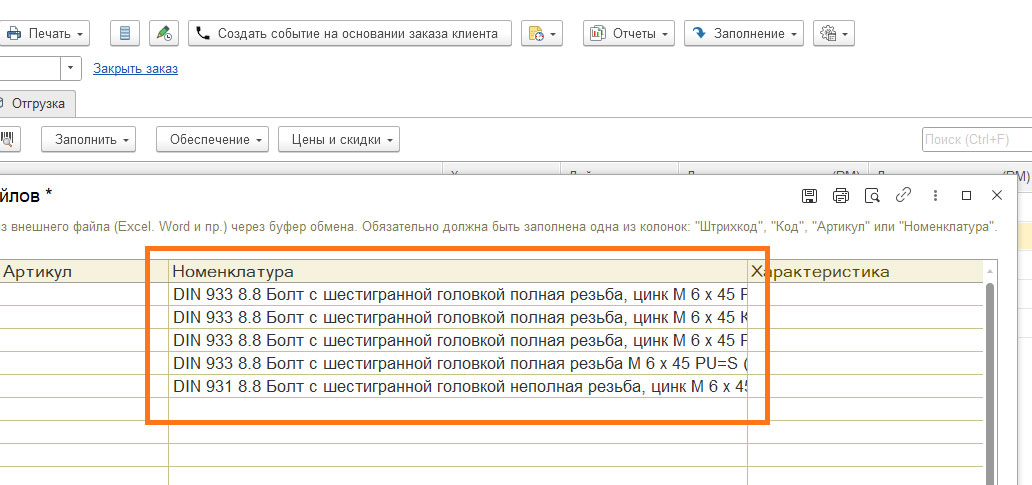 Получение наименования данных из учетной системы при распознавании произвольной номенклатуры и внесение полученных данных в Заказ клиента.